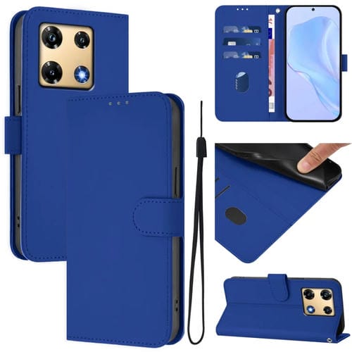 Funda de Cuero con Cordón para Infinix Note 30 Pro 4G con Tacto de Piel (Azul Oscuro)