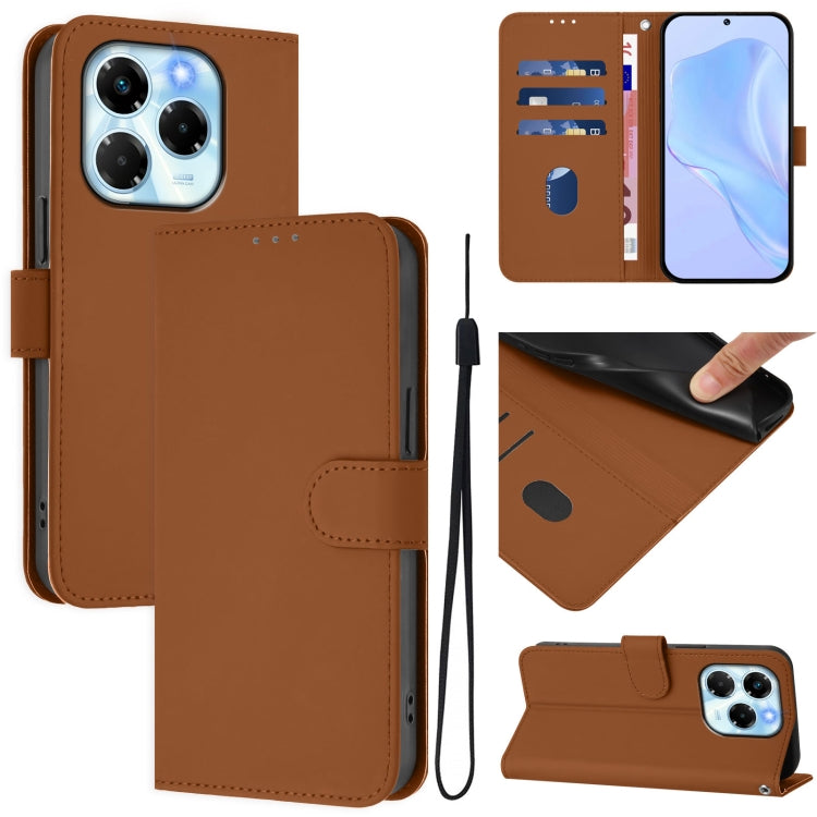 Funda de Cuero con Cordón para Infinix Note 40X 5G con Tacto de Piel (Marrón)