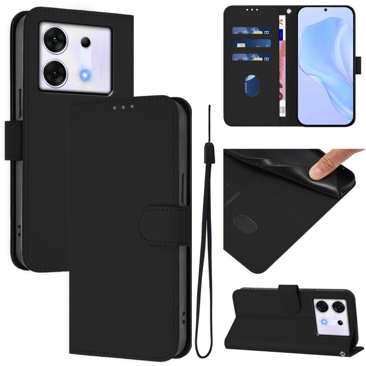 Funda de Cuero con Cordón para Teléfono Infinix Zero 30 5G con Tacto de Piel (Negro)