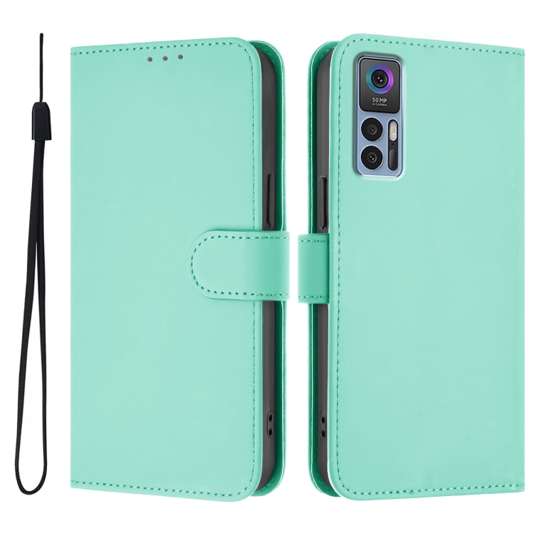 Funda de Cuero con Cordón para Teléfono TCL 30 4G / 30 5G / 30+ Tacto Piel (Verde Menta)