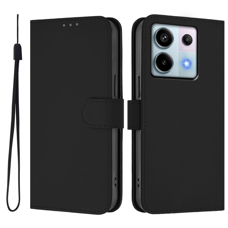 Funda de Cuero con Cordón para Teléfono Xiaomi Poco X6 5G con Sensación de Piel Global En Color Sólido (Negro)