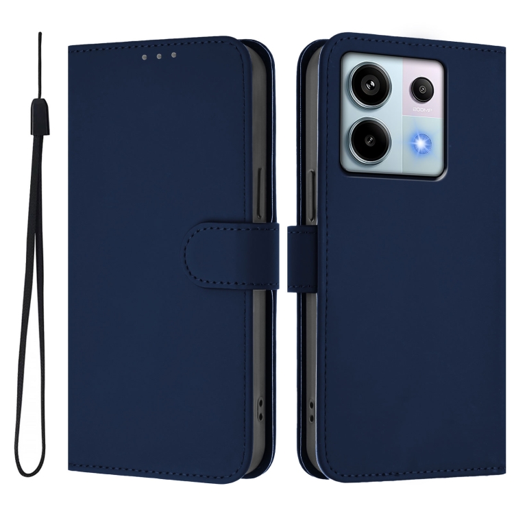 Funda de Cuero con Cordón para Teléfono Xiaomi Poco X6 5G con Tacto de Piel de Color Sólido (Azul Marino)
