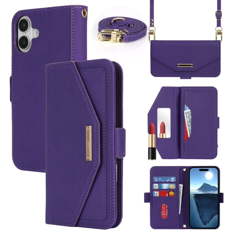 Funda de Cuero con Cordón y Textura Cruzada para iPhone 16 (Morado)
