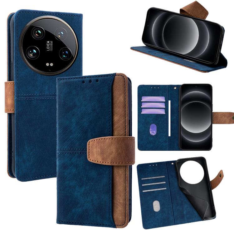 Funda de cuero con costuras de color y bloqueo RFID para Xiaomi 14 Ultra (azul)