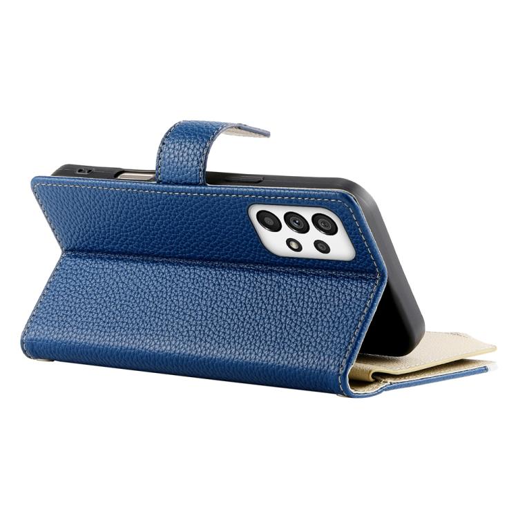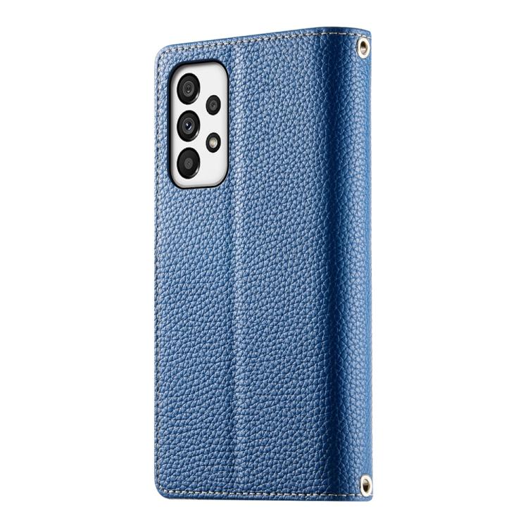 Funda de cuero con cremallera para Samsung Galaxy A73 5G, con costuras, para múltiples tarjetas y correa corta (azul oscuro)