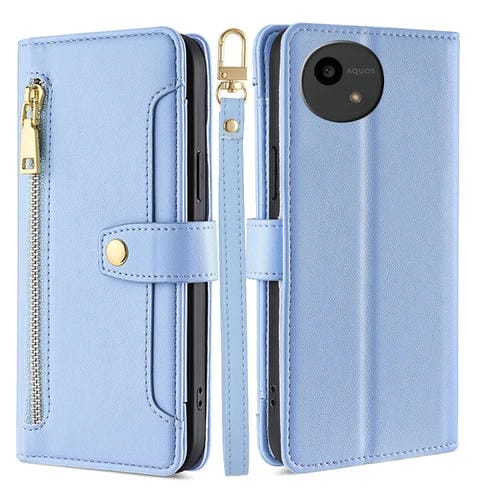 Funda de Cuero con Cremallera para Sharp Aquos Wish4 Diseño Cruzado Textura de Oveja (Azul)