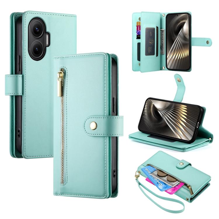 Funda de cuero con cremallera y ranura para tarjetas para Redmi Turbo 4 Pro / Xiaomi Poco F7 (verde menta)