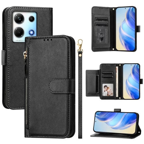 Funda de Cuero con Cremallera y Ranuras para Tarjetas para Infinix Note 30 4G/5G (Negro)