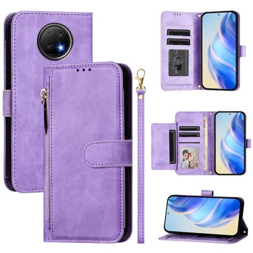 Funda de Cuero con Cremallera y Ranuras para Múltiples Tarjetas para Redmi Note 9T (Morado)