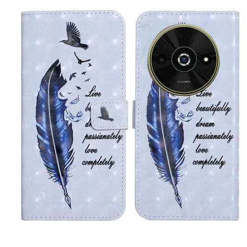 Funda de Cuero con Dibujo 3D En Relieve de Aceite para Xiaomi Poco C61 (Pluma Azul)