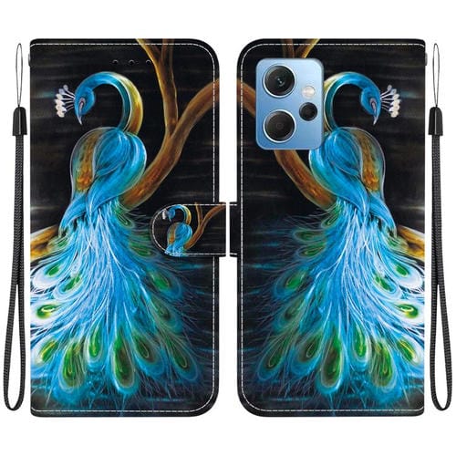Funda de Cuero con Dibujo de Colores y Textura de Cristal Global para Redmi Note 12 4G (Pavo Real)