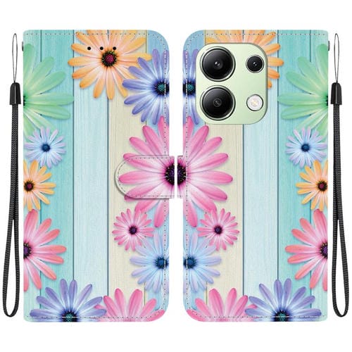 Funda de Cuero con Dibujo de Colores y Textura de Cristal Global para Redmi Note 13 4G (Girasoles)