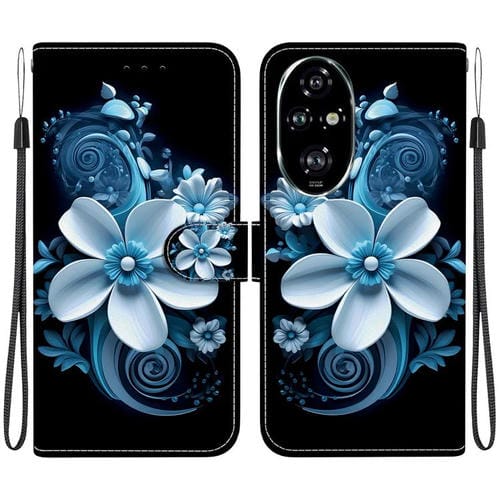 Funda de Cuero con Dibujo y Textura de Cristal para Honor 200 Pro 5G (Orquídea Negra)