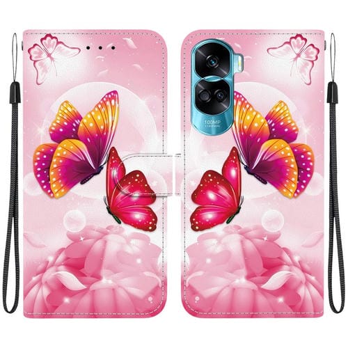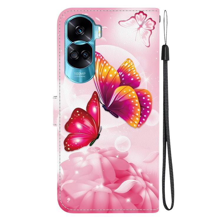 Funda de Cuero con Dibujo y Textura de Cristal para Honor 90 Lite (Mariposas Rosas)