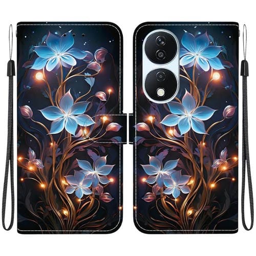 Funda de Cuero con Dibujo y Textura de Cristal para Honor X7B Play 50 Plus (Flor de Linterna Pequeña)