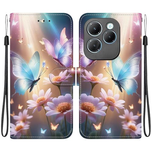 Funda de Cuero con Dibujo y Textura de Cristal para Infinix Hot 40/40 Pro (Mariposa, Amor y Flores)