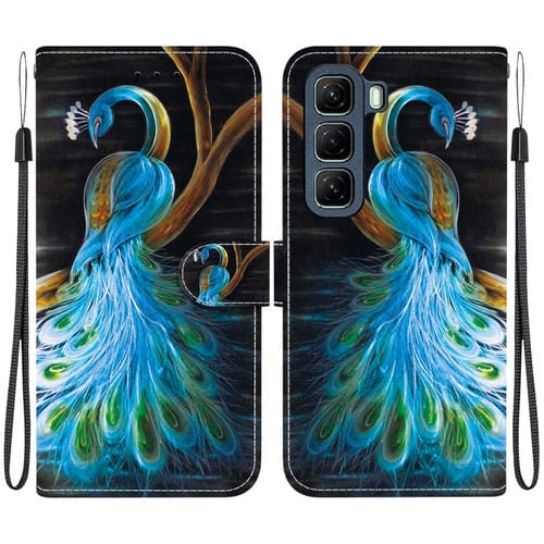 Funda de Cuero para Infinix Hot 50 5G con Dibujo de Colores y Textura de Cristal (Pavo Real)