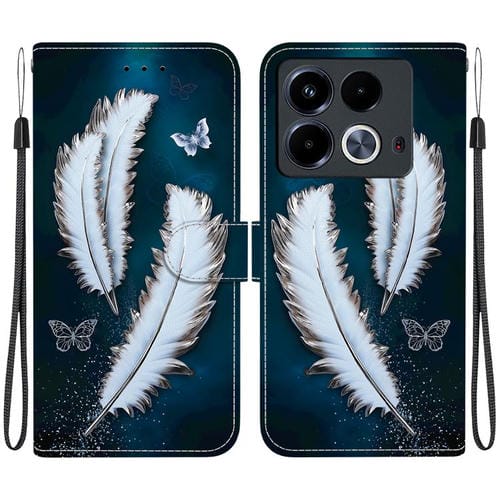 Funda de Cuero para Infinix Note 40 4G con Dibujo de Colores y Textura de Cristal (Plumas de Mariposa Blancas)