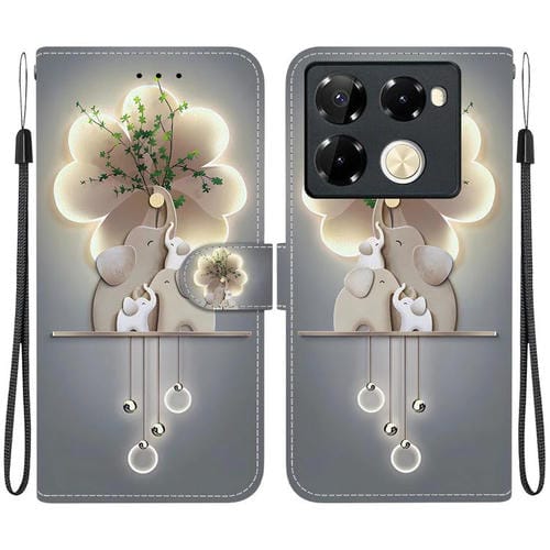 Funda de Cuero con Dibujo y Textura de Cristal para Infinix Note 40 Pro 4G/5G/Pro+ (Elefantes)