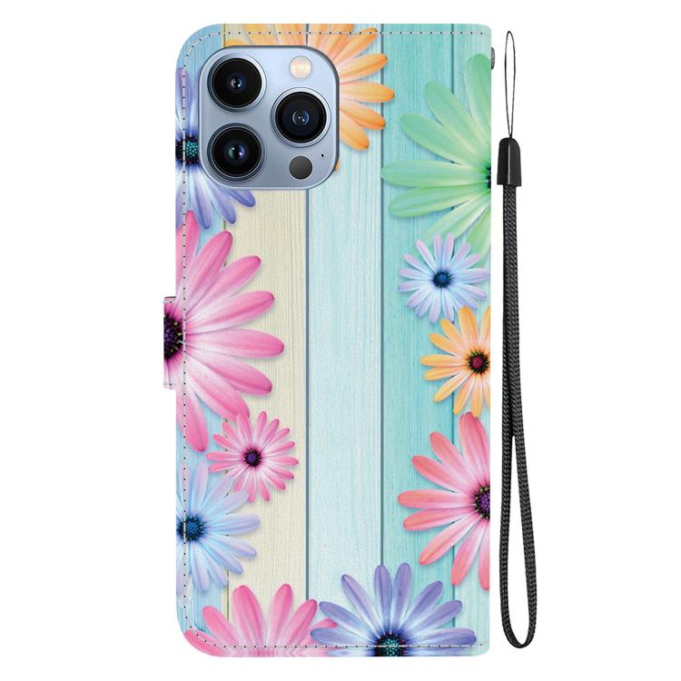 Funda de Cuero iPhone 13 Pro Max Dibujo Colores Textura Cristal (Girasoles)