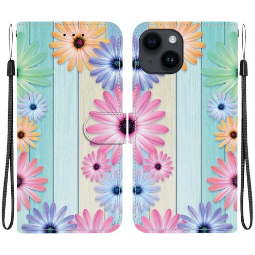 Funda de Cuero para iPhone 15 con Dibujo de Colores y Textura de Cristal (Girasoles)