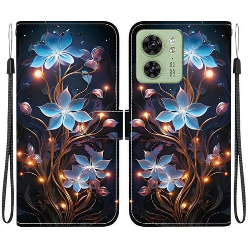 Funda de Cuero Motorola Edge 40 con Dibujo de Colores y Textura de Cristal (Flor de Linterna Pequeña)