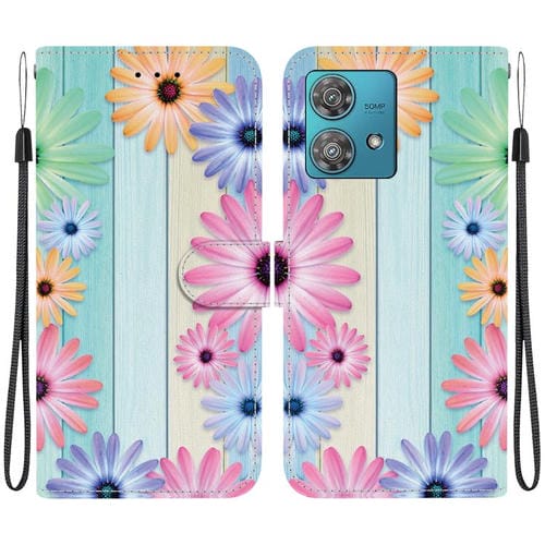 Funda de Cuero para Motorola Edge 40 Neo con Dibujo de Colores y Textura de Cristal (Girasoles)