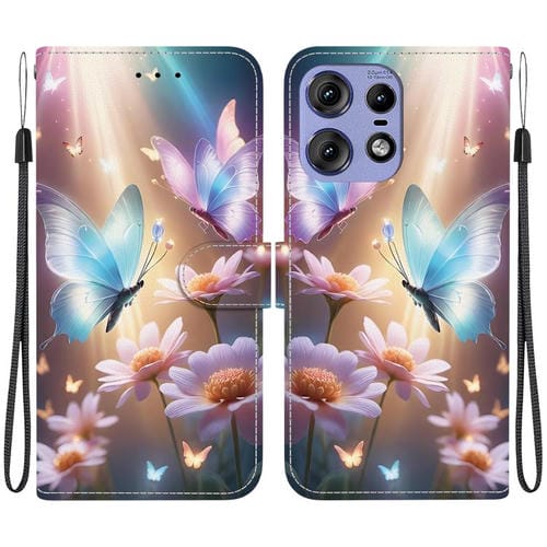 Funda de Cuero con Dibujo de Colores y Textura de Cristal para Motorola Edge 50 Pro (Mariposa, Amor y Flores)