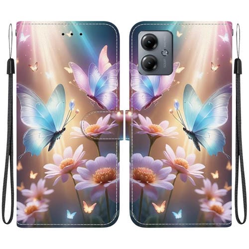 Funda de Cuero para Motorola Moto G14 con Dibujo de Colores y Textura de Cristal (Mariposa, Amor y Flores)