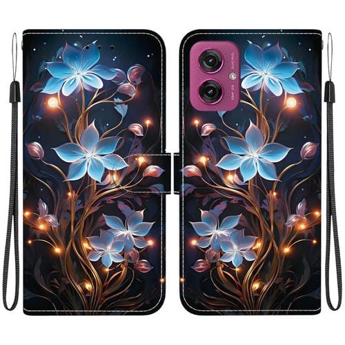 Funda de Cuero Motorola Moto G55 con Dibujo de Colores y Textura de Cristal (Flor de Linterna Pequeña)