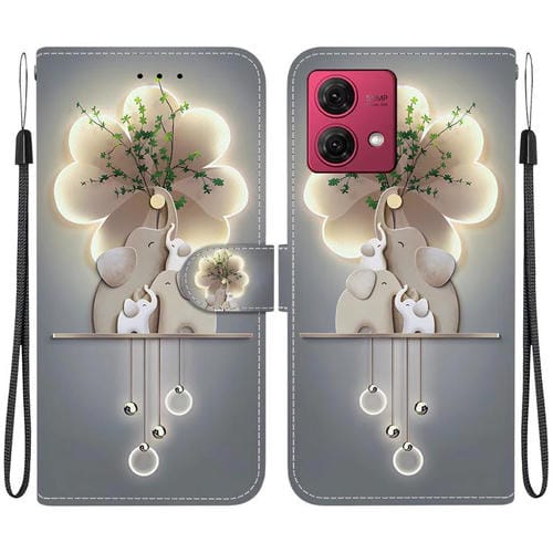 Funda de Cuero para Motorola Moto G84 con Dibujo de Colores y Textura de Cristal (Elefantes)