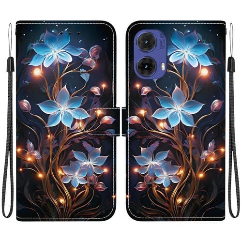 Funda de Cuero Motorola Moto G85 con Dibujo de Colores y Textura de Cristal (Flor de Linterna Pequeña)