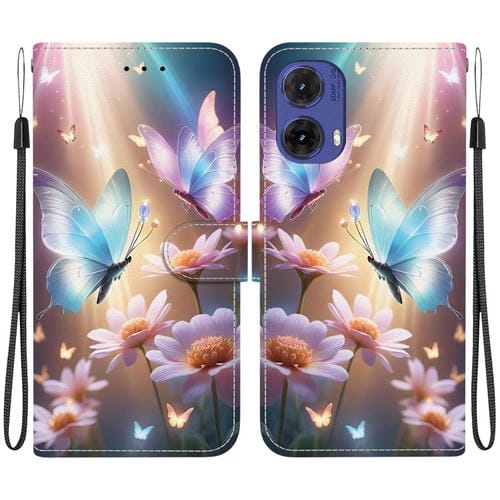 Funda de Cuero para Motorola Moto G85 con Dibujo de Colores y Textura de Cristal (Mariposa, Amor y Flores)