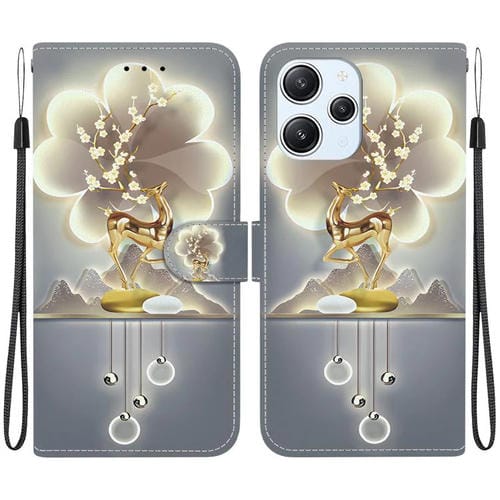 Funda de Cuero con Dibujo de Colores y Textura de Cristal para Redmi 12 4G/5G/Poco M6 Pro (Ciervo Sika)