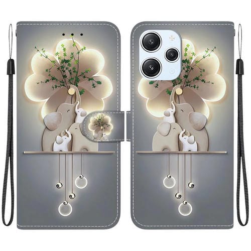 Funda de Cuero con Dibujo de Colores y Textura de Cristal para Redmi 12 4G/5G/Poco M6 Pro (Elefantes)