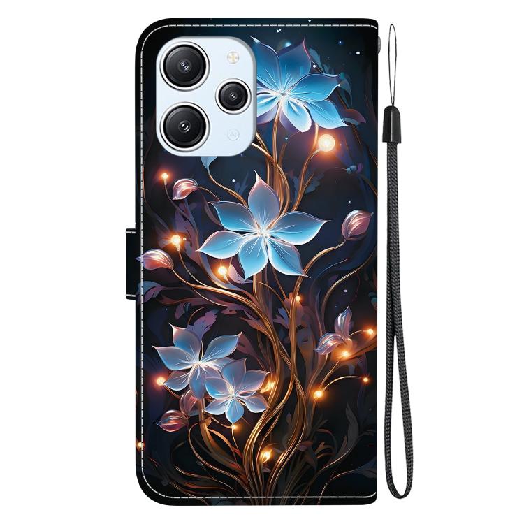 Funda de Cuero con Dibujo de Colores y Textura de Cristal para Redmi 12 4G/5G/Poco M6 Pro (Flor de Linterna Pequeña)