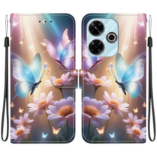 Funda de Cuero con Dibujo de Colores y Textura de Cristal para Redmi 13 4G/Poco M6 (Mariposa y Flor)