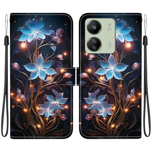 Funda de Cuero con Dibujo de Colores y Textura de Cristal para Redmi 13C 4G / 5G / 13R 5G (Flor de Linterna Pequeña)