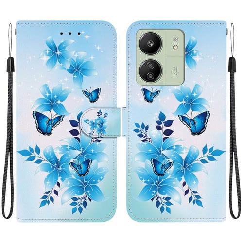 Funda de Cuero con Dibujo de Colores y Textura de Cristal para Redmi 13C 4G / 5G / 13R 5G (Mariposas Azules)