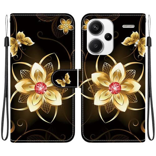 Funda de Cuero con Dibujo de Colores y Textura de Cristal para Redmi Note 13 Pro+ 5G (Flor Dorada)