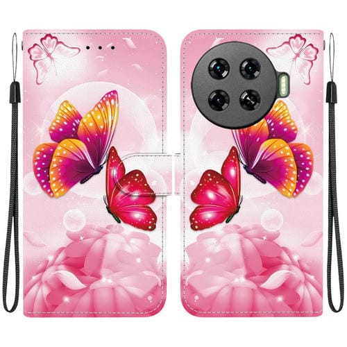 Funda de Cuero para Tecno Spark 20 Pro+ 4G con Dibujo de Colores y Textura Cristal (Mariposas Rosas)