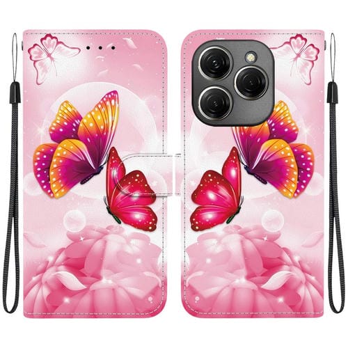 Funda de Cuero para Tecno Spark 20 Pro con Dibujo de Colores y Textura de Cristal (Mariposas Rosas)