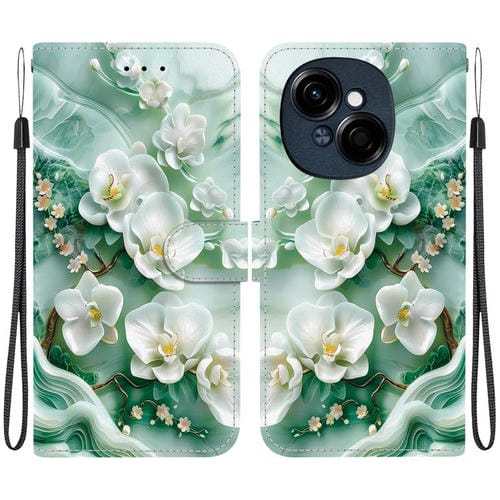 Funda de Cuero para Tecno Spark Go 1 Pop 9 Pro con Dibujo de Colores y Textura de Cristal (Flores de Jade)