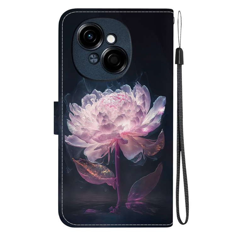 Funda Cuero Tecno Spark Go 1 Pop 9 Pro Dibujo Colores Textura Cristal (Peonía Morada)