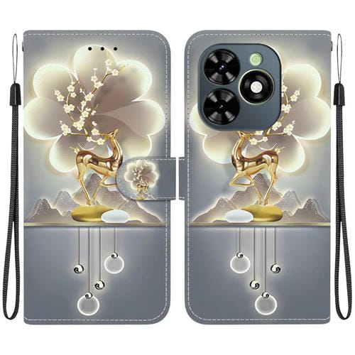 Funda de Cuero para Tecno Spark Go 2024/20C/Pop 8 con Dibujo de Colores y Textura de Cristal (Ciervo Sika)