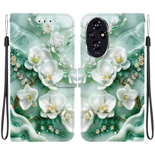 Funda de Cuero Honor 200 5G con Dibujo de Colores y Textura de Cristal (Flores de Jade)