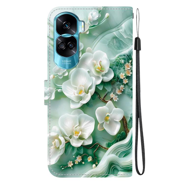 Funda de Cuero Honor 90 Lite con Dibujo de Colores y Textura de Cristal (Flores de Jade)