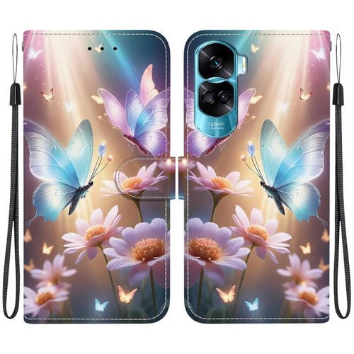 Funda de Cuero para Honor 90 Lite con Dibujo de Colores y Textura de Cristal (Mariposa, Amor y Flores)