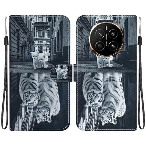 Funda de Cuero Honor Magic7 con Dibujo de Colores y Textura de Cristal (Reflejo de Tigre y Gato)