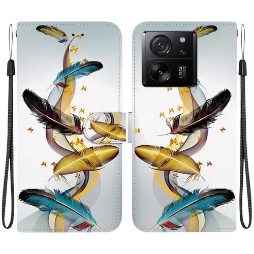 Funda de Cuero con Dibujo de Colores y Textura de Cristal para Xiaomi 13T/13T Pro (Plumas de Mariposa Doradas)